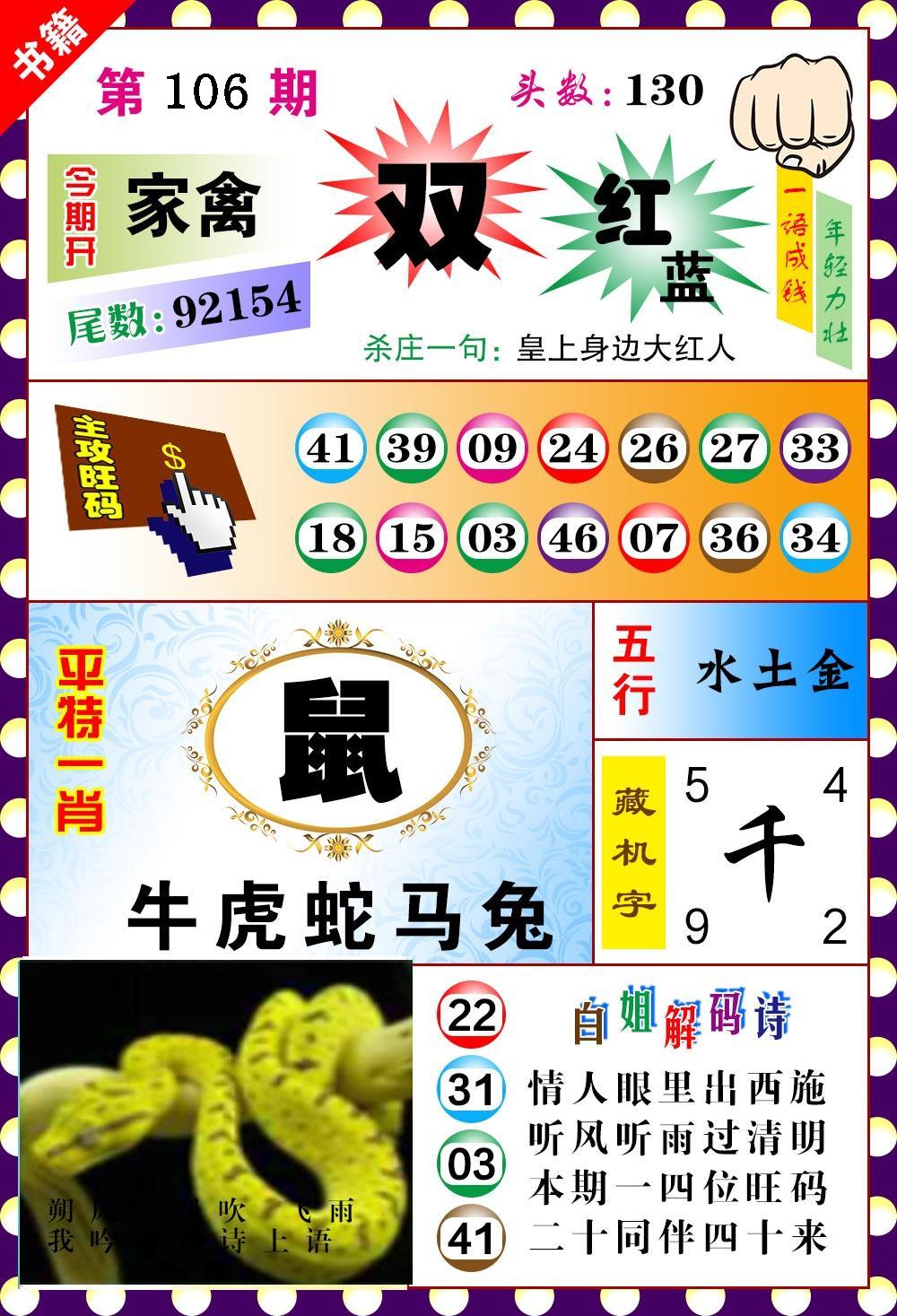 | 五肖:兔牛蛇羊虎 | ⑤码:跟着我一定赢 |